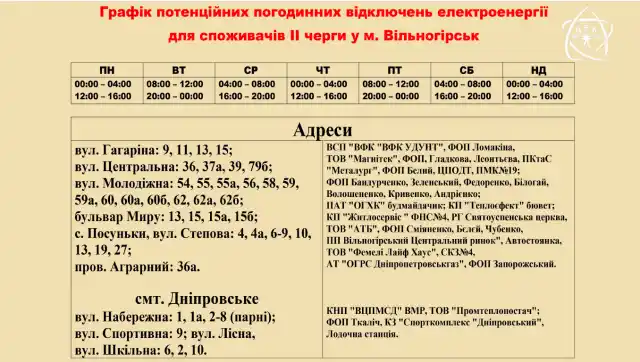 Тимчасові графіки погодинних відключень 1 2022-11-26 Переглядів 4227 Джерело Центральна енергетична компанія